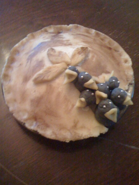 And - because it’s beyond awesome - here’s a snap of my birthday cake, lovingly baked for me by my Mum. As anyone who knows their nursery rhymes will recognise, it is the notorious pie from sing a song of sixpence: